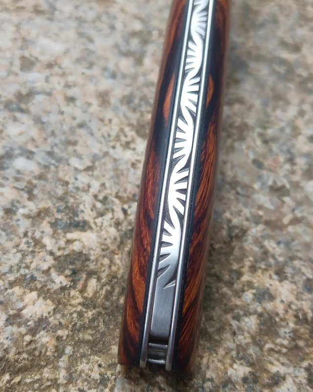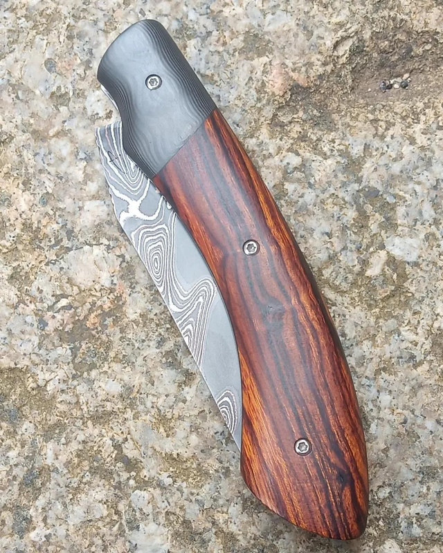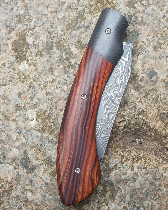 Couteau pliant Sionvillois cran carré damas Bois de fer